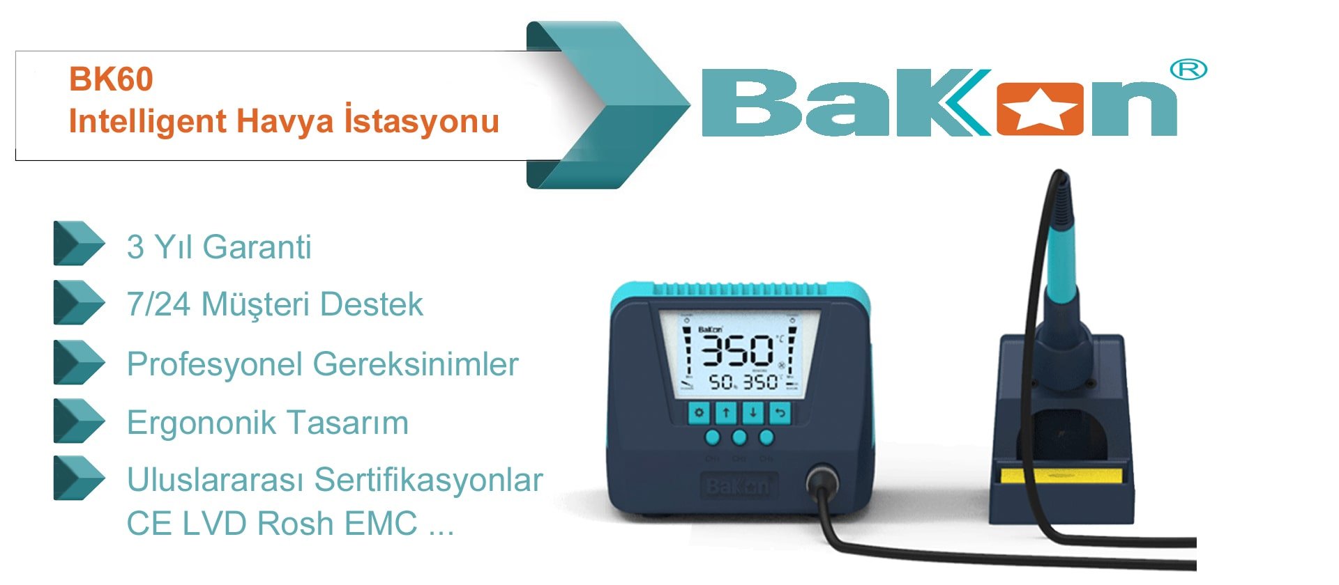 Son derece sessiz çalışan Bakon BK60 Akıllı Isı Kontrollü Havya İstasyonu, yer kaplamayan boyutlarıyla çalışma alanınızdan tasarruf etmenizi sağlar. Hassas sıcaklık veri detaylarına ulaşmanız için çok şık 2.9'' boyutlarında geniş LCD dijital ekran ile profesyoneller için ideal tasarlanmıştır. Bakon BK60 Sıcaklık Ayarlı Akıllı Lehim İstasyonu ile çalışmalarınızda cihaz ve kişisel güvenliğinizi korumak amacıyla, uyarı sistemi, otomatik uyku fonksiyonu, şifre oluşturma, 3 Farklı seviye sıcaklık ön ayarı yapabilme gibi özellikler en ince detayına kadar düşünülmüştür.Ayarlanabilir Akıllı Uyku Zaman Aralığı 10-60 dkKısa devre, açık devre, aşırı sıcaklık, hata algılama, ve aşırı yük koruma sistemleri gibi bir çok özelliği sayesinde de lehim istasyonunuzu güvenle kullanabilirsiniz.Çalışma verimliliğinizi arttıran lehim istasyonu sahip olduğu en son teknolojiyle sahip mikrobilgisayar sıcaklık kontrolü P.I.D sayesinde ayarladığınız sıcaklığı, sapma olmadan doğru değerlerde sabitler.